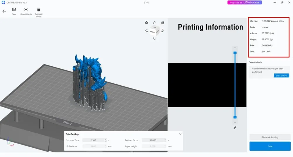 - ตัวโปรแกรมจะแจ้ง ระยะเวลาและปริมาณเรซินที่ใช้ในการปริ้น